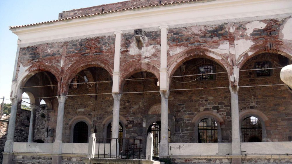 Στέγαση με κεραμοσκεπή και τρούλο (ο τρούλος και μέρος του μιναρέ κατέρρευσαν στα μέσα του 20ου αιώνα).