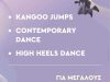 Από pilates εδάφους και σε ειδικό κρεβάτι (reformer) μέχρι ενδυνάμωση, face yoga, kangoo jumps, contemporary dance και high heels dance. Προγράμματα ατομικά ή σε μικρά group για μέγιστη αποτελεσματικότητα και ασφάλεια.